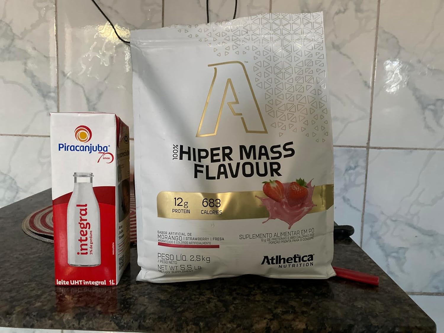 Tomei hoje, mas já conhecia o produto, ele não é doce como dizem, pois tem suplementos bem piores em questão de açúcar como os da max, snake dragon e da profit. Esse de morango me agradou e não pretendo trocar de marca mais, visto que, a Atlética é top nos seus produtos.Para o ganho de peso funciona bem, mas tem que comer certinho também eu chego a ganhar 3kg por semana fazendo muita atividade física, me pesei no dia de hoje e fui de 50.300 para 51.500 em apenas 3 dias de uso do produto.
