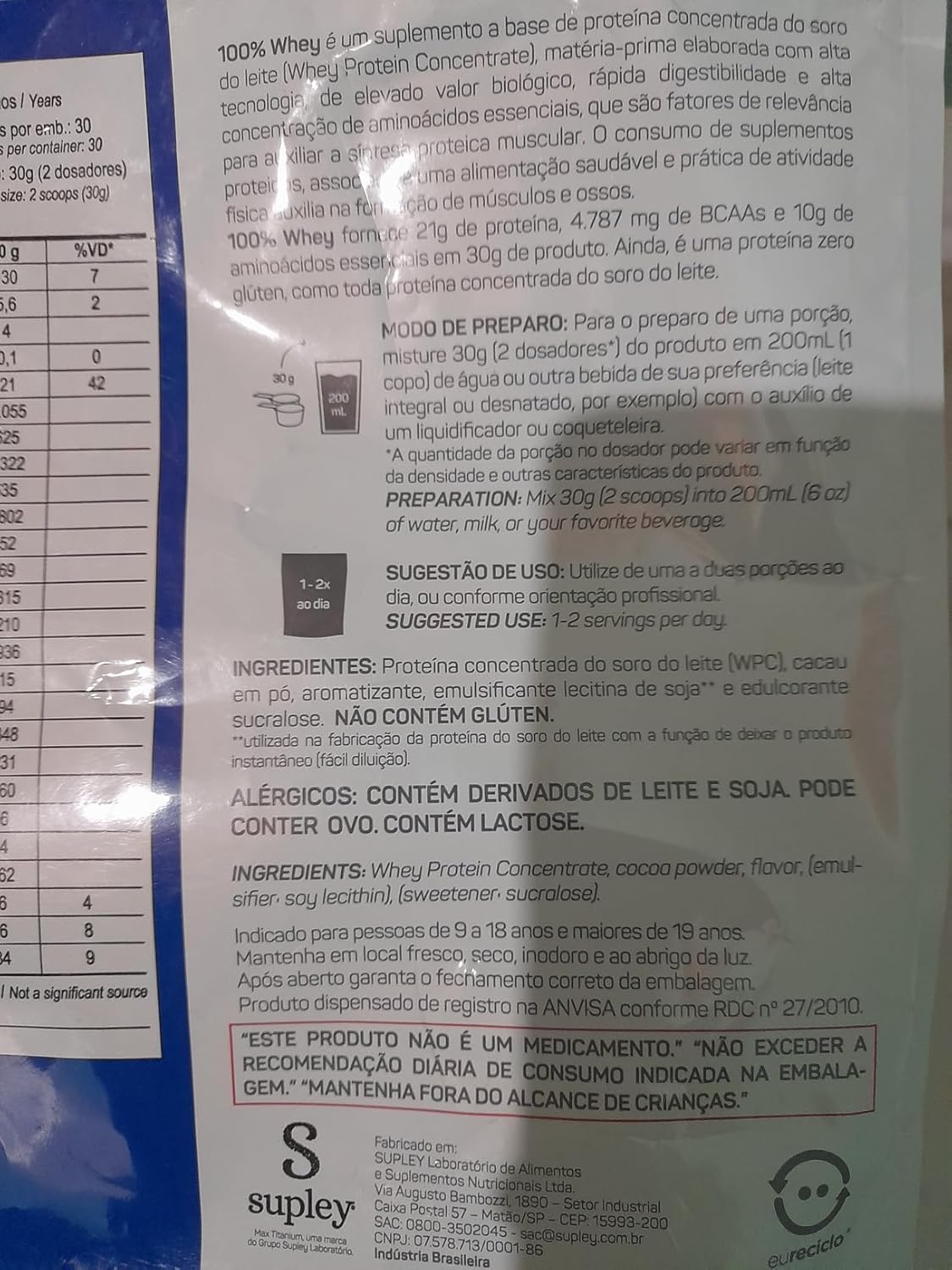 O problema que tem uma quantidade de proteína boa, mas tem uma dose de açúcar um pouco acima. A parte que não gostei que contém aromatizante sintético idêntico ao natural e é colorido artificialmente, ou seja, buscamos saúde e nos intoxicados com aromas sintético, creio que não deva fazer bem a saúde. Mas acredito que todas as marcas tem esse mesmo problema. Dizem que existe whey natural, sem sabor. Da próxima vez vou procurar um desse.