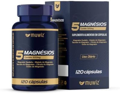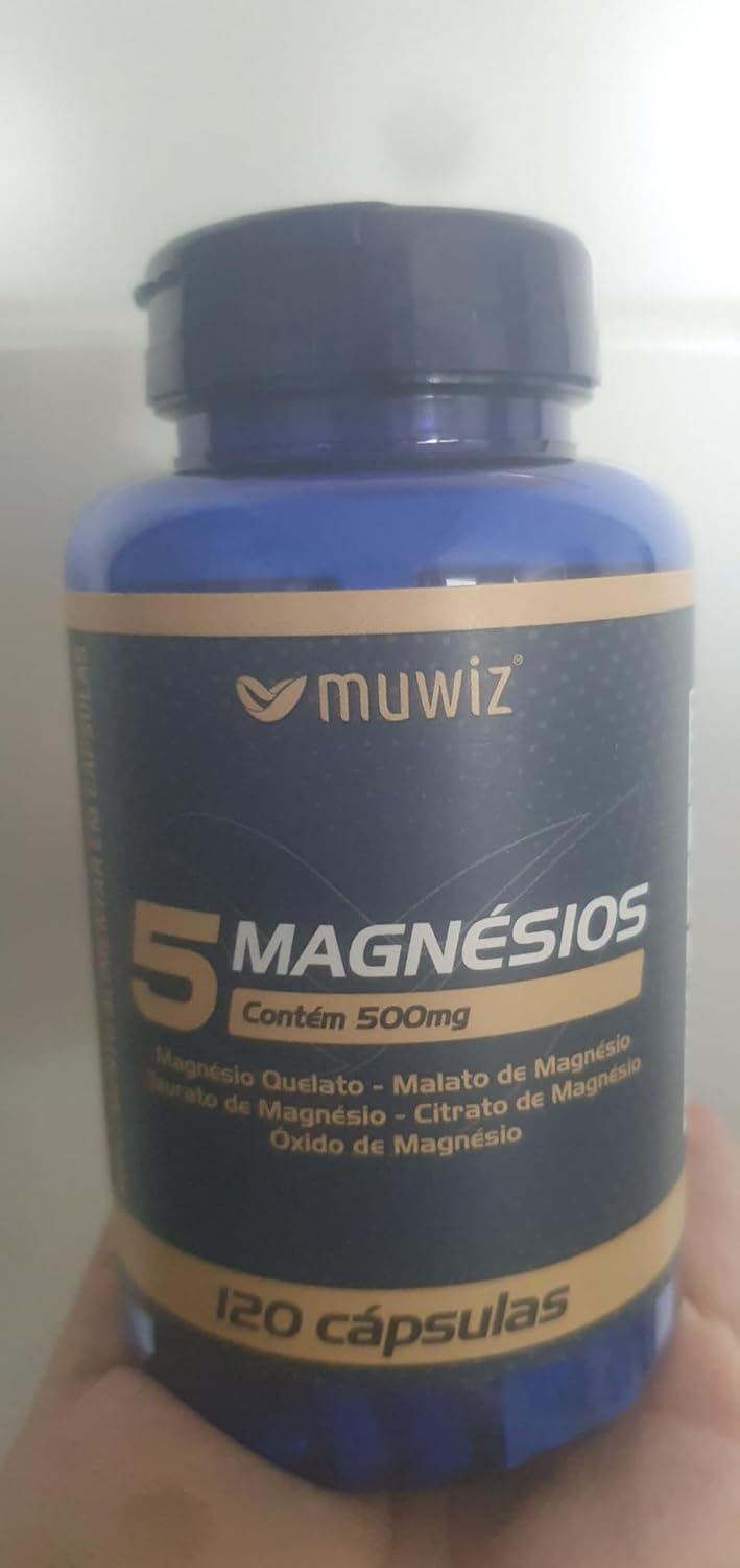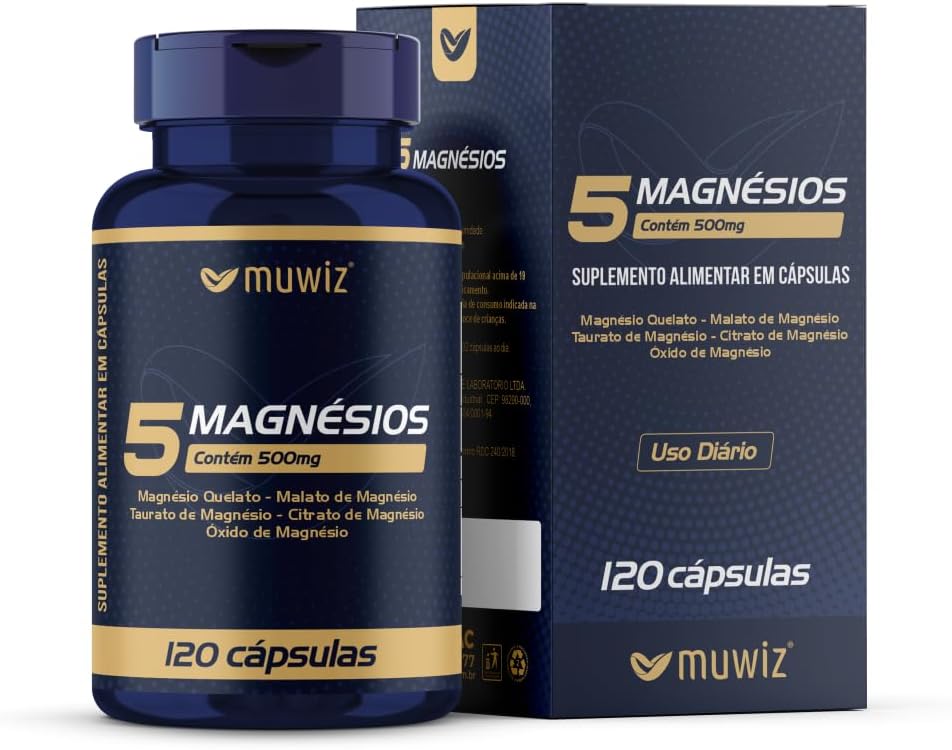 Muwiz 5 Magnésios 500mg 120 Cápsulas – Quelato Malato Taurato Sulfato e Óxido de Magnésio