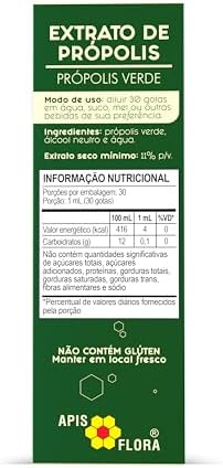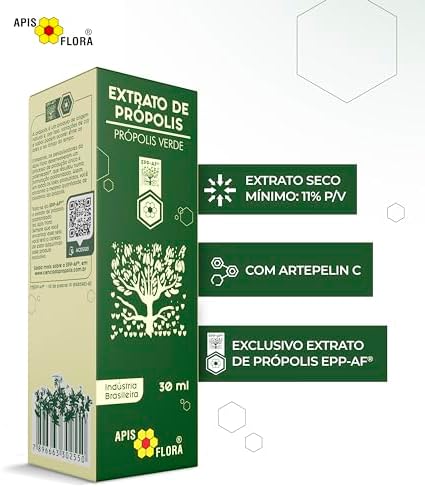 O Extrato de Própolis Verde Apis Flora é produzido exclusivamente com a própolis verde, que é obtida a partir de uma planta nativa do Brasil, a Baccharis dracunculifolia, popularmente conhecida como Vassourinha ou Alecrim do Campo. Ele é um extrato alcoólico.