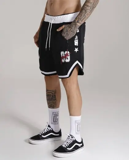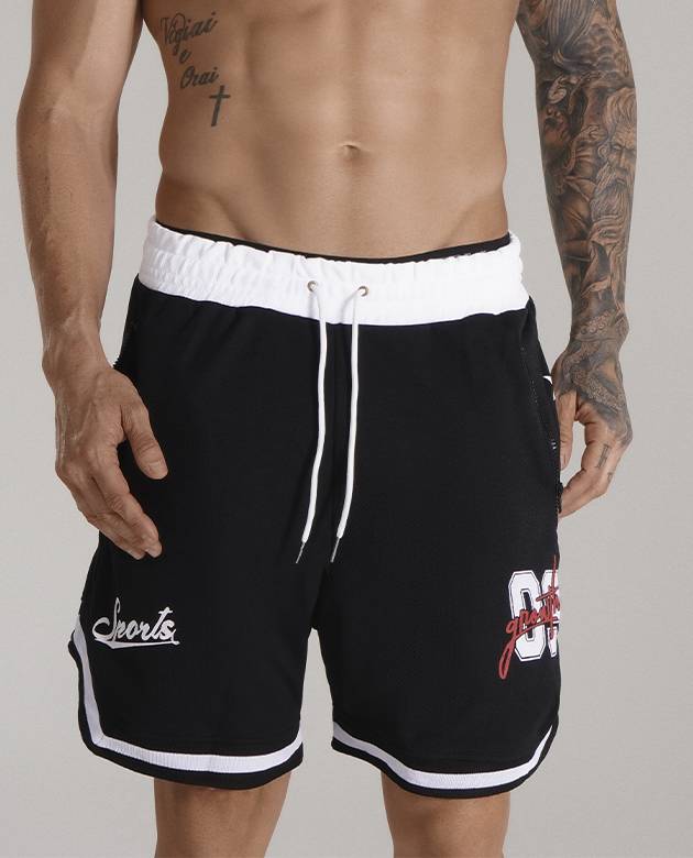 - COLEÇÃO GROWTH SPORTS- - BERMUDA GROWTH SPORTS 09 PRETO/BRANCO/VERMELHO - COMPOSIÇÃO 100% POLIÉSTER ACABAMENTO EM RETILINIA PERSONALIZADA ESTAMPA EM SILK BOLSO FRONTAL COM ZÍPER + BOLSOS TRASEIROS