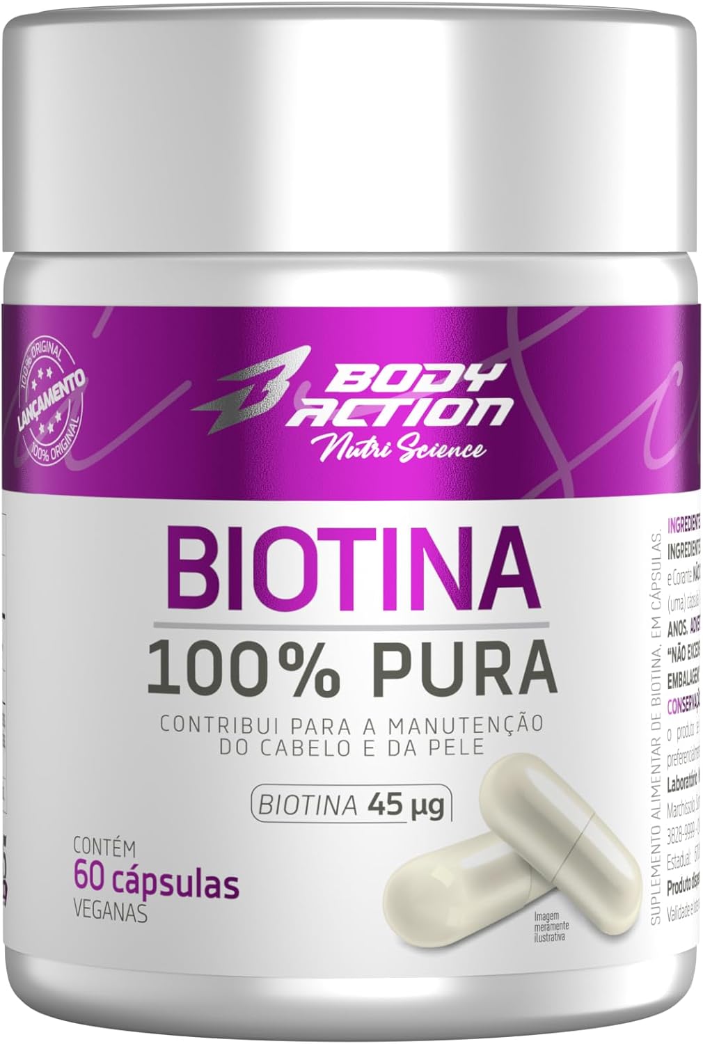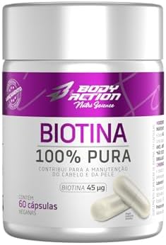 A Biotina 100% Pura da Bodyaction Nutri Science foi desenvolvida para fortalecer cabelos, pele e unhas com eficácia e praticidade. Cada cápsula contém 45 µg de Biotina, garantindo a dose ideal para os cuidados diários. Com a qualidade e confiança Bodyaction, é a escolha perfeita para quem busca um suplemento confiável e de alta qualidade.