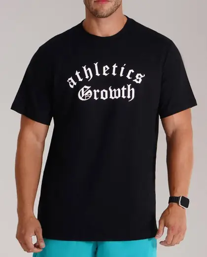 - COLEÇÃO GROWTH ATHLETICS - - CAMISETA PRETA ATHLETICS GROWTH GO - COMPOSIÇÃO 100% ALGODÃO - FIO 30.1 PENTEADO ESTAMPA FEITA EM PROCESSO SILK.