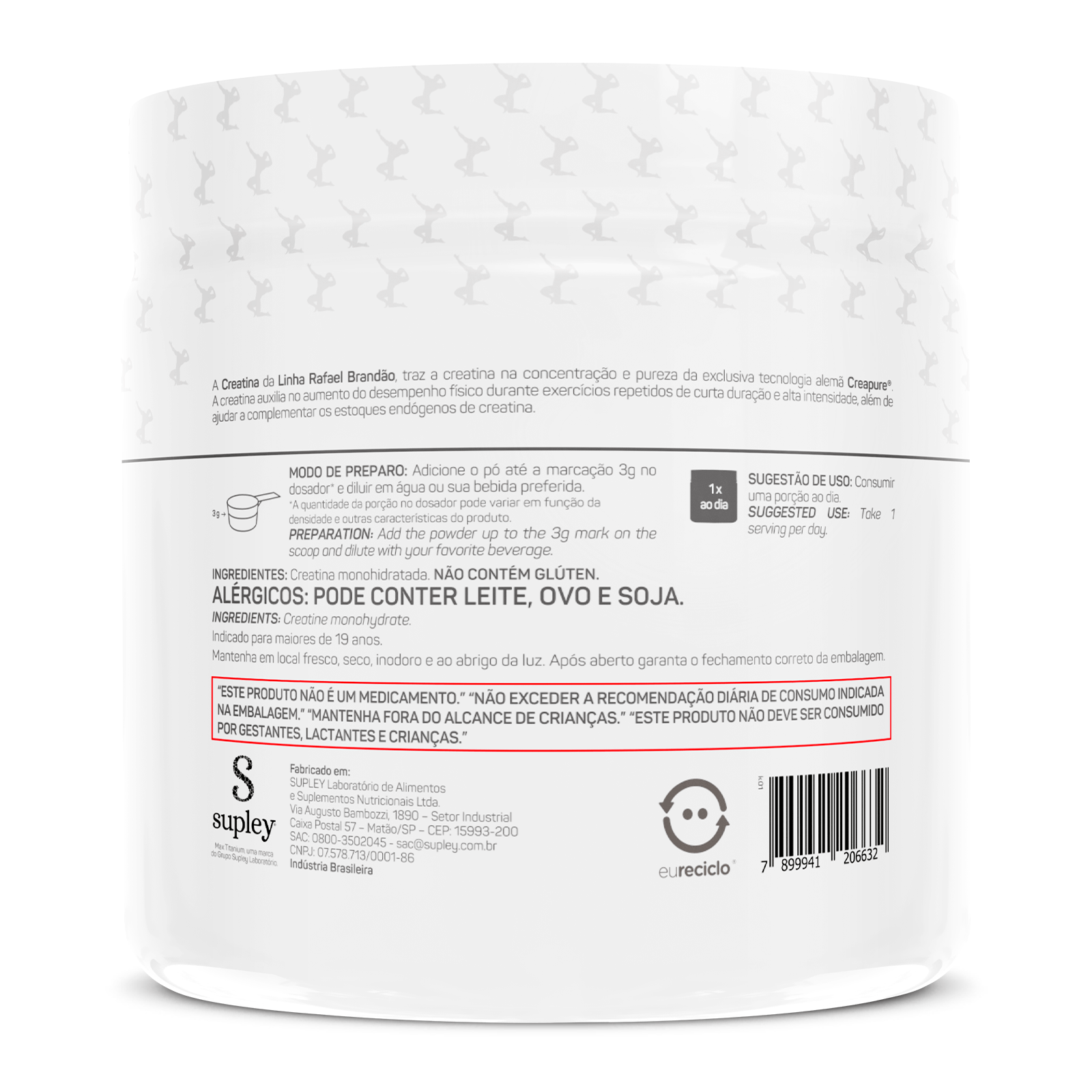 A Creatina da Linha Rafael Brandão, traz a creatina na concentração e pureza da exclusiva tecnologia alemã Creapure®