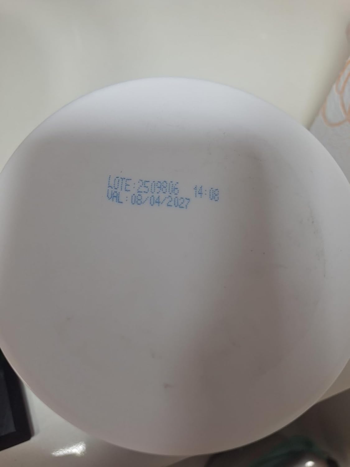 Veio metade do produto. A embalagem azul chegou integralmente lacrada. Ao abrir, me deparei com 150g em um pote que era pra ter 300g. Também não veio dosador.Isso é algo que não me faz comprar novamente esse produto.