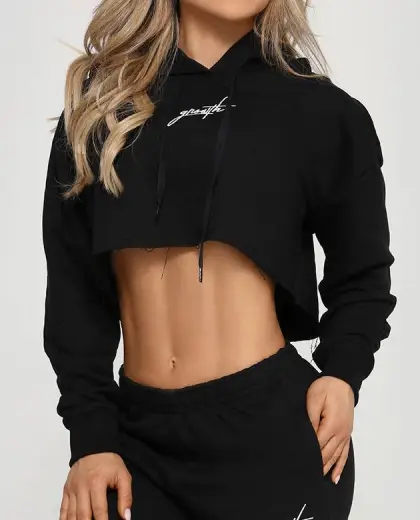 Cropped Moletom Growth Manuscrito Preto