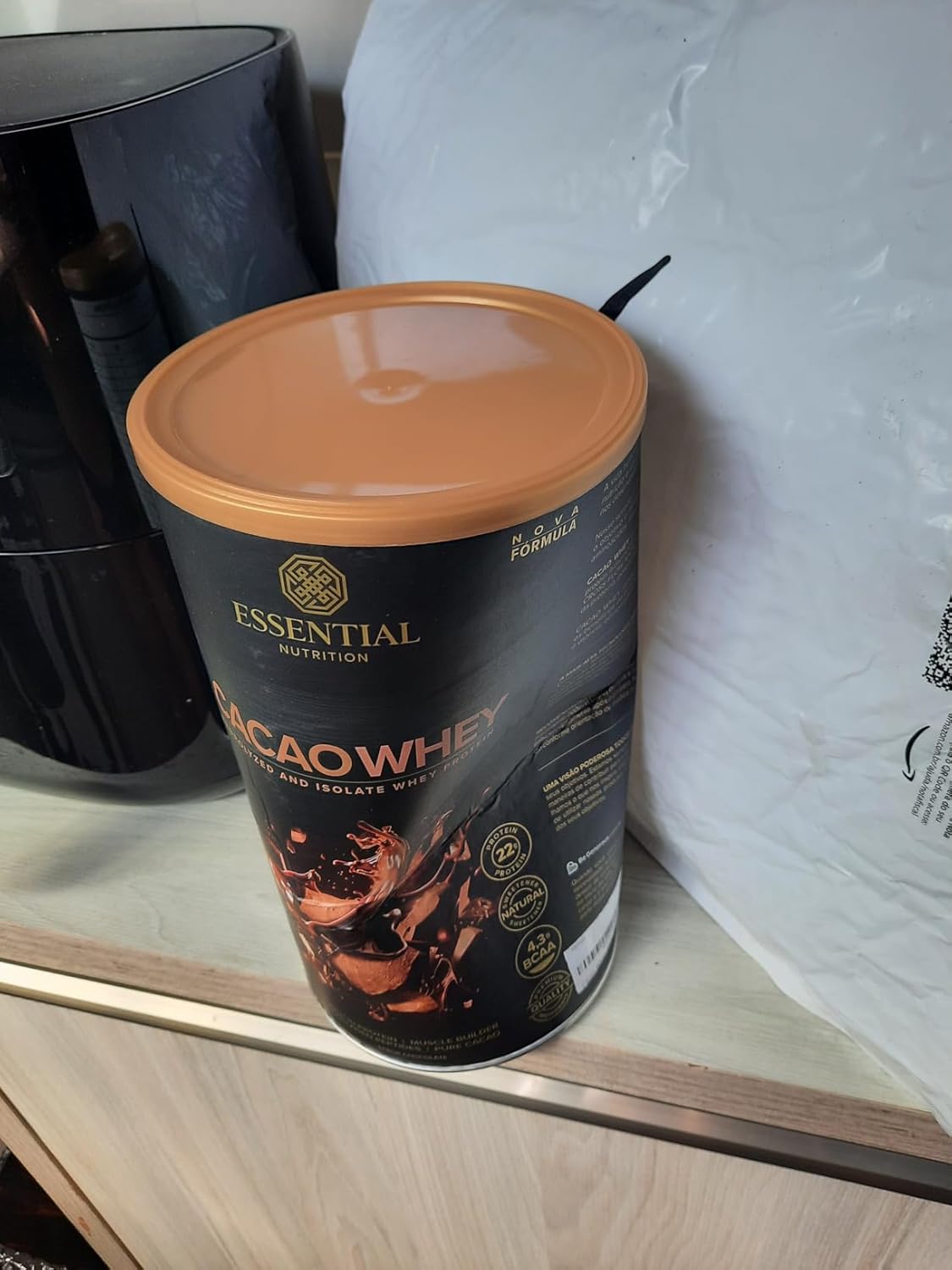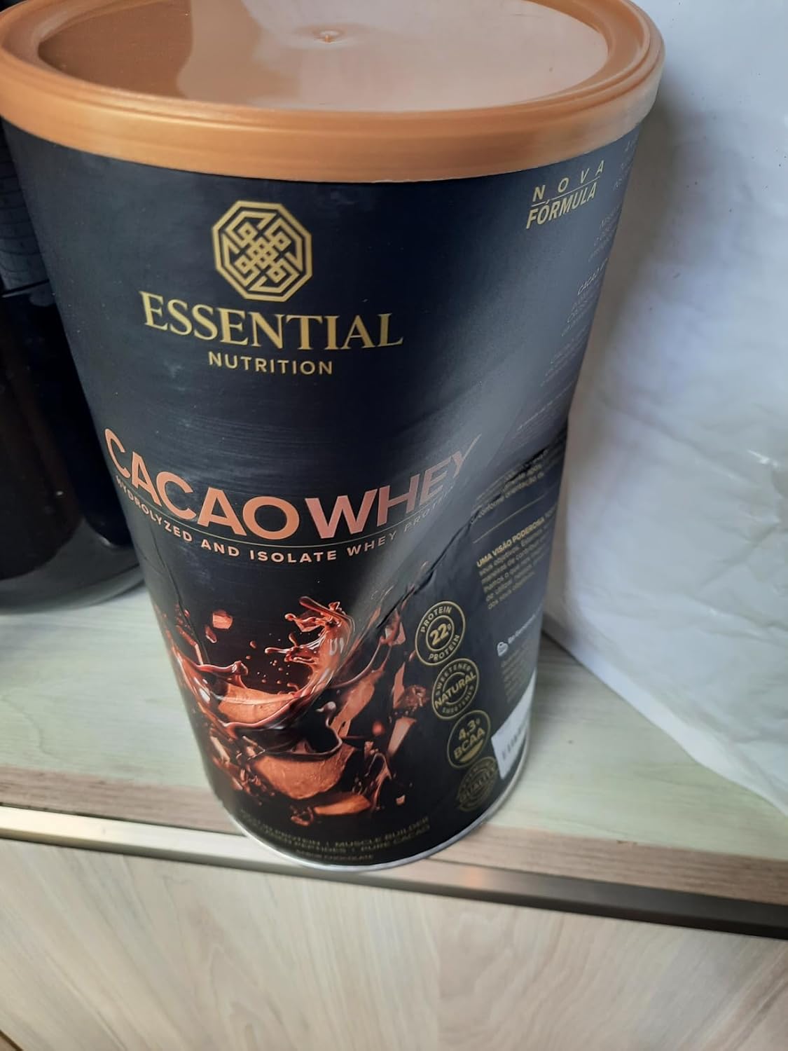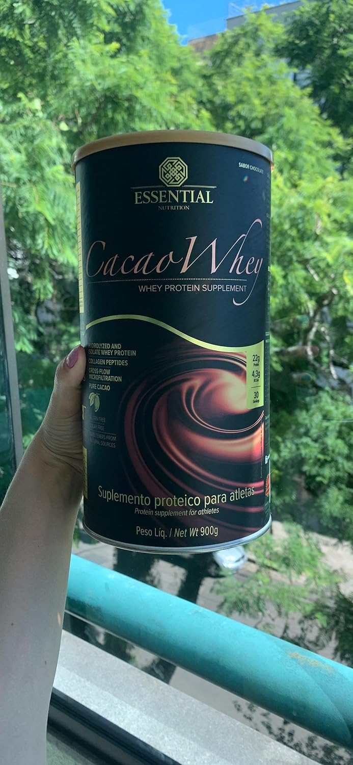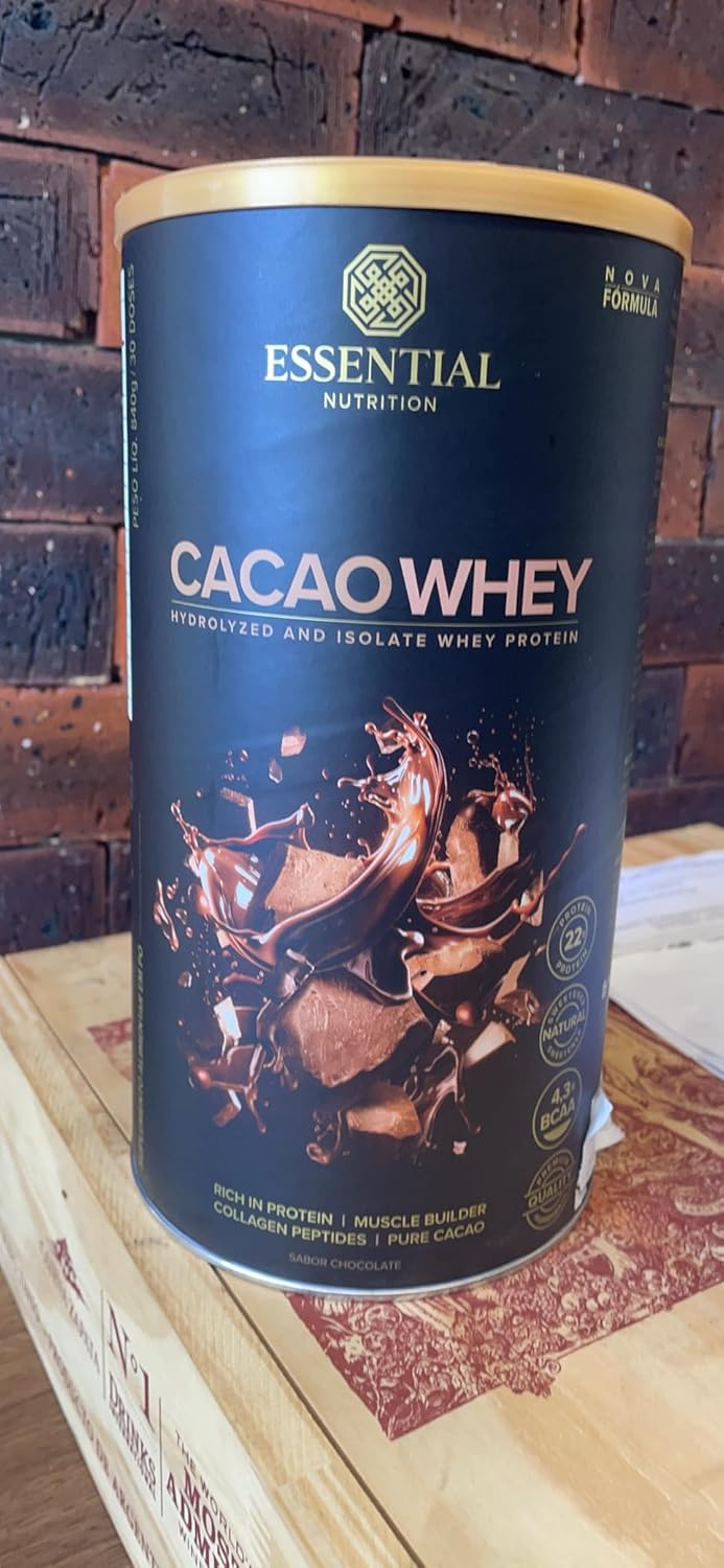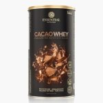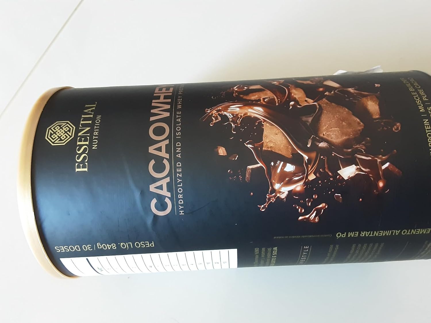 Cacao Whey da Essential Nutrition é um suplemento alimentar em pó, apresentado em embalagem de 840g em lata, com rendimento aproximado de 30 doses.