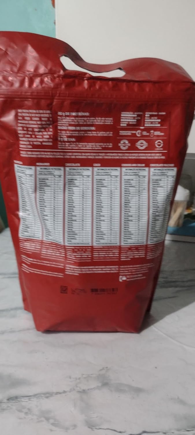 Cheiro bem forte estranho, parece salgadinho, chegou intacto, entrega demorou um pouco mas nada absurdo, gosto de creme barato e pedaços de bolacha, mesmo dps de pronto o cheiro encobre mas creio que vou me acostumar.