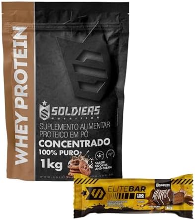 Soldiers Nutrition Kit: Whey Protein 1Kg Cookies + Barrinha Elitebar
