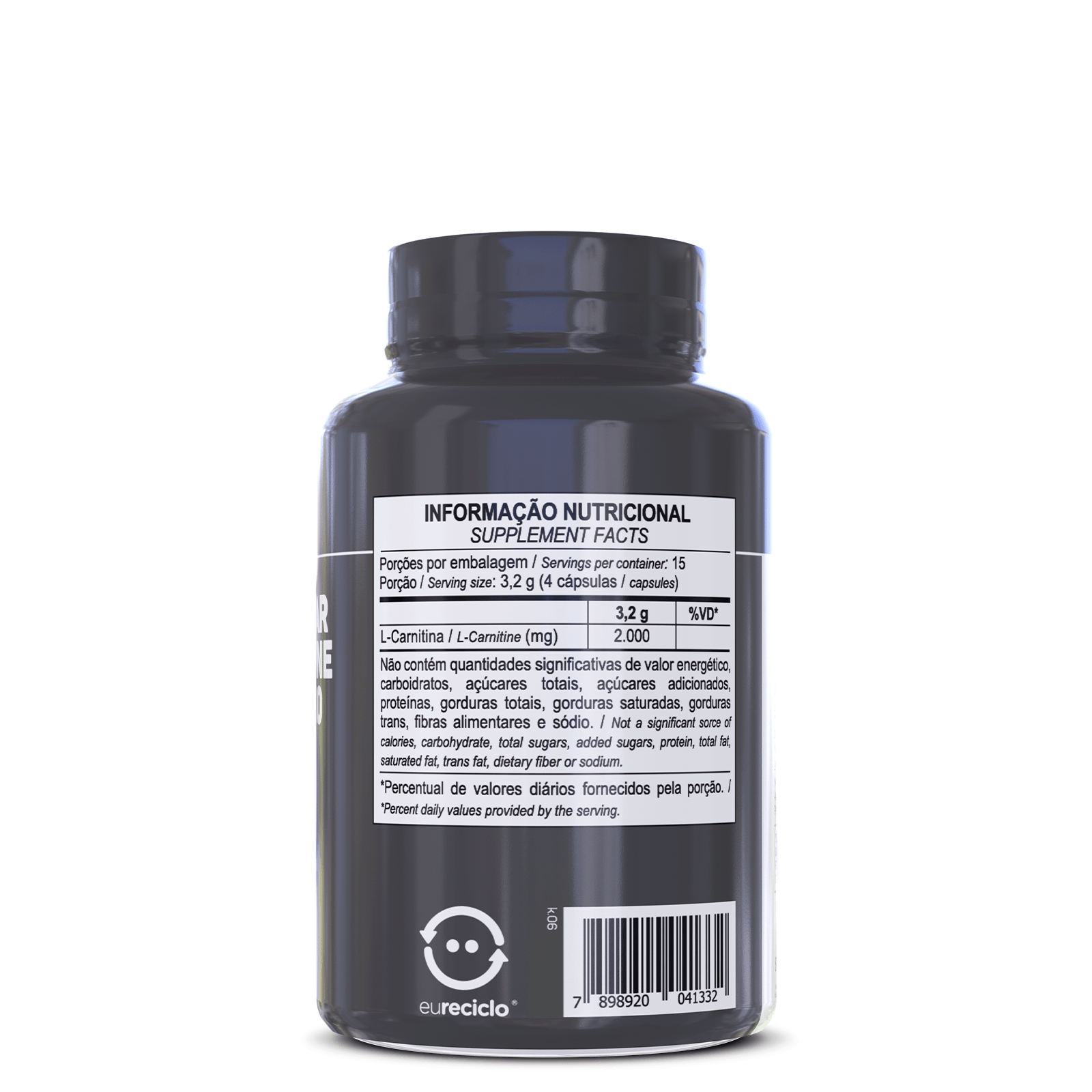 Tartarato de L-Carnitina, amido de milho, antiumectante fosfato tricélcico e cápsula (gelatina, corantes dióxido de titânio, vermelho 40, azorrubina e amarelo de quinoleéna).