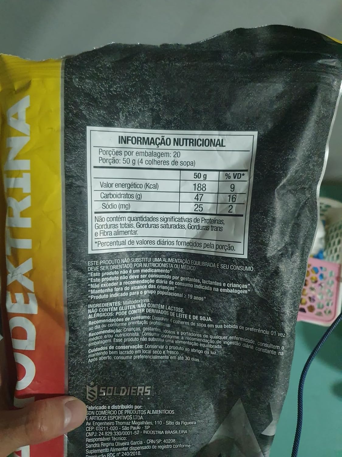 Maltodextrina 1Kg – 100% Puro Importado – Soldiers Nutrition Benefícios: – Fonte de energia; – Diminuição da fadiga muscular; – Auxilia no ganho de massa magra; – Evita a perda de massa muscular; A maltodextrina é um carboidrato que proporciona benefícios para quem pratica atividades fisicas e precisa de energia, por ser um carboidrato de absorção rápida ela auxilia como uma fonte de energia mais rápido que carboidratos complexos. Além de ser ótima fonte de energia, a maltodextrina auxilia no ganho de massa muscular magra e diminui a fadiga muscular. Ideal para quem pratica exercícios físicos com alta intensidade e necessite de um ótimo carboidrato. SOMOS FABRICANTES, PRODUTO DIRETO DA FÁBRICA PARA VOCÊ COM TOTAL GARANTIA DE QUALIDADE ANVISA: Registro ISENTO conforme resolução RDC 27 de 06 de agosto de 2010 anexo I. Registro ISENTO conforme resolução RDC 240/2018.