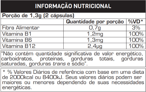 • 100% do valor diário de vitaminas B1, B6 e B12