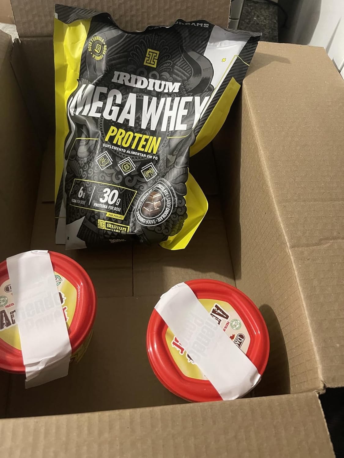 Chegou no prazo bem embalado! Pasta de Amendoim saborosa, mas ALTO TEOR DE GORDURA SATURADA.