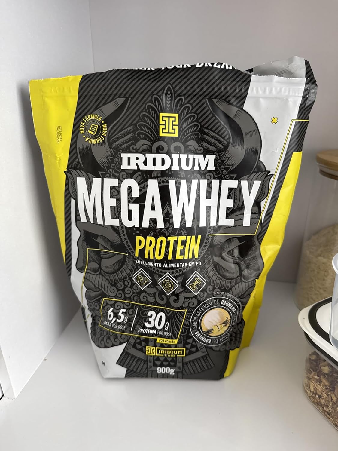 Experimente o Mega Whey Protein da Iridum Labs, um suplemento premium desenvolvido para atletas e pessoas ativas que desejam potencializar a recuperação muscular e otimizar a performance. Sua fórmula exclusiva combina a proteína de soro do leite concentrada (WPC) com maltodextrina, que, em sinergia, auxilia na recuperação pós-treino e contribui para a manutenção da massa muscular, promovendo uma reposição energética eficaz. Além disso, o delicioso sabor, torna a suplementação ainda mais prazerosa, ajudando a transformar sua rotina de treinos. Fabricado com rigorosos padrões de qualidade, o Mega Whey Protein contém derivados de leite e lactose, não contém glúten e é indicado para o consumo por indivíduos com 19 anos ou mais. Sugestão de consumo: Dissolver 120 g (equivalente a 8 colheres de sopa) em 350 ml de água gelada. Consumir preferencialmente após a prática de exercícios ou conforme orientação profissional. Confie na integridade e na qualidade da Iridum Labs para elevar seus resultados e alcançar o melhor desempenho físico! Ingredientes: Proteína de soro do leite concentrada (WPC), maltodextrina, cacau em pó, aroma artificial, espessante goma guar, antiumectante dióxido de silício e edulcorante sucralose.