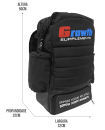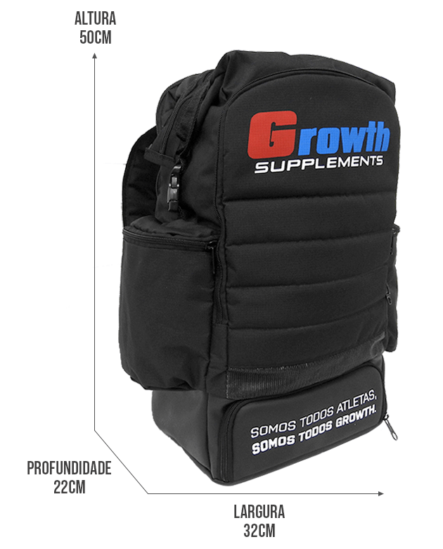 Ter a bolsa termica ajuda muito mas o fato de ser acoplada fixamente na mochila quando vc nao usa o pote ela fica só atrapalhando e nao da pra colocar nada ali dentro. Alsa para segurar rasgou em pouco tempo de uso e é mal posicionada. Os bolsos para copo não cabem o proprio copo da Growth. E o fato da bosa ficar mais alta só atrapalha pois a pinça que fecha ela não tem um meio termo, sempre fecha pequeno.