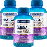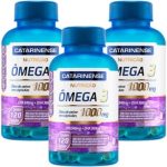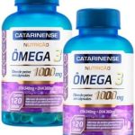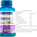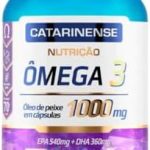 - Ômega 3 Catarinense Nutrição com 1000mg de óleo de peixe, sendo que em três cápsulas contém 540mg EPA e 360mg DHA. Contém 120 cápsulas