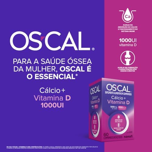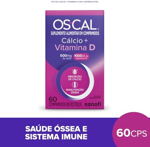 OS-CAL Cálcio 500mg + Vitamina D 1000UI é um suplemento alimentar que serve para quem necessita de suplementação de cálcio e vitamina D**. Possui em sua composição 500mg de cálcio e 1000 UI de Vitamina D¹ (Colecalciferol), está disponível em embalagens com 60 comprimidos revestidos. Quando o assunto é a saúde dos ossos*, OS-CAL é referência há mais de 25 anos, contando com 4 fórmulas que se adaptam às suas necessidades: OS-CAL D3, OS-CAL Cálcio, OS-CAL Cálcio 500mg + Vitamina D 400UI e OS-CAL Cálcio 500mg + Vitamina D 1000UI. OS-CAL Cálcio 500mg + Vitamina D 1000UI não é um medicamento e deve ser mantido fora do alcance das crianças. O produto deve ser conservado* em temperatura ambiente (entre 15°C e 30°C), na embalagem original, em locais secos e sem umidade. Evite deixar o produto aberto*. Como tomar OS-CAL Cálcio + Vitamina D? Recomenda-se o uso de 1 comprimido de OS-CAL Cálcio 500mg + Vitamina D 1000UI ao dia. Este produto é indicado para adultos, a partir de 19 anos, gestantes e lactantes. Quais são os benefícios do suplemento mineral OS-CAL? Um dos benefícios do suplemento alimentar OS-CAL Cálcio 500mg + Vitamina D 1000UI é o fortalecimento da estrutura óssea, já que o cálcio presente no OS-CAL ajuda na formação e manutenção dos ossos e dentes*, além de contribuir para o funcionamento muscular e o metabolismo energético**. Outro benefício importante é a melhoria da imunidade, pois a vitamina D encontrada em OS-CAL aumenta a absorção de cálcio e fósforo**. Ela também auxilia no funcionamento do sistema imunológico. Informações importantes sobre o uso do suplemento de cálcio OS-CAL Cálcio + Vitamina D Advertências Durante o tratamento prolongado com OS-CAL Cálcio 500mg + Vitamina D 1000UI , é importante verificar os níveis de cálcio no sangue e acompanhar a função dos rins. Para isso, utiliza-se um exame que mede a creatinina no sangue, que ajuda a entender como os rins estão funcionando. Se houver aumento excessivo de cálcio no sangue (hipercalcemia) ou sinais de problemas renais, procure o médico para saber qual caminho seguir. Pode ser necessário diminuir a dose de OS-CAL Cálcio + Vitamina D ou até parar o tratamento. Além disso, ao usar este suplemento alimentar, é necessário prestar atenção à ingestão total de cálcio vinda de outras fontes, como alimentos ou outros suplementos. A administração elevada de cálcio com substâncias alcalinas, como carbonatos, pode causar uma condição chamada síndrome láctea-alcalina, que pode acarretar hipercalcemia, insuficiência renal e alcalose metabólica (elevação anormal do pH do sangue). Os carbonatos estão presentes em diversos alimentos, como leite, queijo e até mesmo refrigerantes. Por último, quando forem adotadas doses elevadas do suplemento OS-CAL Cálcio + Vitamina D, os níveis de cálcio devem ser monitorados tanto no soro sanguíneo quanto na urina para garantir segurança e eficácia. Em alguns casos especiais, outros cuidados devem ser tomados, veja: Pacientes idosos O uso prolongado de cálcio pode provocar prisão de ventre. Grávidas O suplemento mineral OS-CAL Cálcio + Vitamina D pode ser utilizado durante a gestação em casos de deficiência de cálcio e vitamina D, mas a dose diária não deve ultrapassar os limites recomendados. De forma geral, o uso do suplemento OS-CAL Cálcio + Vitamina D por mulheres grávidas deve sempre ser feito com orientação médica. Lactantes A vitamina D e seus metabolitos são eliminados no leite materno, por isso, consulte seu médico para entender como a ingestão adicional de vitamina D pode impactar a criança. Alérgicos Este produto pode conter traços de látex natural, soja e trigo. Contém glúten. Por isso, se você tem alergia a algum desses componentes, o uso não é recomendado. Quais são os efeitos colaterais do suplemento de cálcio OS-CAL Cálcio + Vitamina D? O suplemento alimentar OS-CAL Cálcio + Vitamina D pode ocasionar os seguintes efeitos colaterais: – Distúrbios do sistema imunológico: hipersensibilidade autoimune (alergia ou intolerância); – Distúrbios metabólicos e nutricionais: hipercalcemia (aumento nos níveis de cálcio no sangue), hipercalciúria (eliminação de cálcio na urina); – Distúrbios gastrintestinais: náusea, diarreia, dor abdominal, constipação, flatulência (excesso de gases no estômago ou intestinos); – Distúrbios renais e urinários: risco potencial de hiperfosfatemia (nível anormalmente elevado de fosfato no sangue), nefrolitíase (presença de pedras nos rins) e nefrocalcinose (deposição de cálcio nos rins); Para mais informações sobre efeitos colaterais e interações medicamentosas durante o uso do suplemento de cálcio OS-CAL Cálcio + Vitamina D, consulte a bula. FAQ: entenda mais sobre saúde óssea com OS-CAL Para que serve o cálcio? O cálcio é essencial para a formação e manutenção de ossos e dentes fortes, além de desempenhar um papel fundamental na coagulação sanguínea, na contração muscular e no funcionamento adequado do sistema nervoso. Ele também ajuda na liberação de hormônios e enzimas. O suplemento alimentar OS-CAL Cálcio + Vitamina D, que combina cálcio e vitamina D**, favorece a absorção do cálcio pelo organismo, promovendo a saúde óssea e prevenindo problemas como a osteoporose. Adotar a reposição de cálcio em sua rotina é uma forma prática e eficaz de garantir que seu corpo receba este mineral que auxilia em uma vida ativa e saudável. OS-CAL é o seu aliado nessa jornada! Para que serve a vitamina D? A vitamina D é importante para a absorção de cálcio e fósforo, essenciais para a saúde óssea. Ela também fortalece o sistema imunológico. Além de promover a formação e manutenção de ossos e dentes**, a vitamina D também desempenha um papel importante na saúde muscular. Com o auxílio do suplemento alimentar OS-CAL Cálcio + Vitamina D, a reposição de vitamina D ajuda 