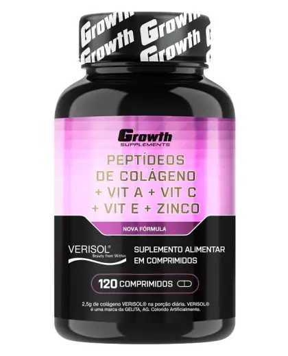 Além disso, a fórmula da Growth para o Colágeno Verisol também conta com a presença de zinco, que pode auxiliar na melhora da visão, na manutenção dos ossos e, assim como a vitamina C, pode contribuir para o fortalecimento do cabelo, da pele e das unhas.