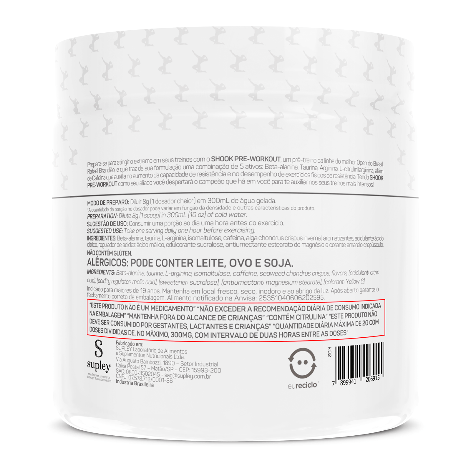 O Shook é parte da exclusiva linha de Rafael Brandão, criada para atletas que não se contentam com o básico. Sua fórmula reúne os ingredientes mais estudados e eficazes do mercado, entregando energia explosiva, pump extremo e foco inabalável. Cada treino se transforma em uma verdadeira batalha vencida.