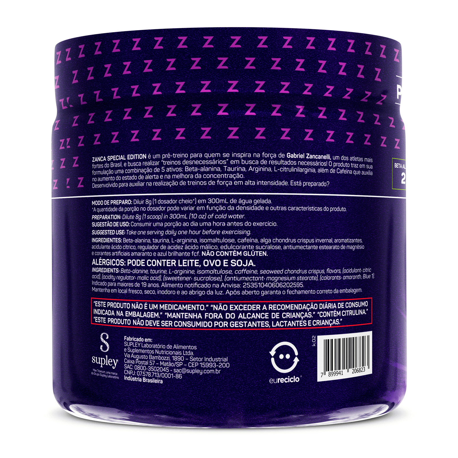 n O TDZ Force carrega o nome do atleta Gabriel Zancanelli n e representa a verdadeira definição de potência. n Desenvolvido para treinos insanos, sua fórmula entrega n energia no limite, pump avassalador e foco inabalável, n transformando qualquer sessão de treino em evolução real.n