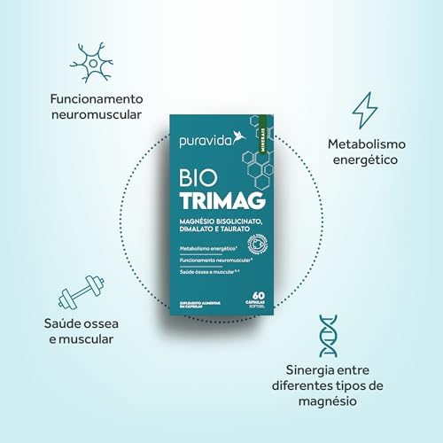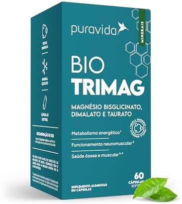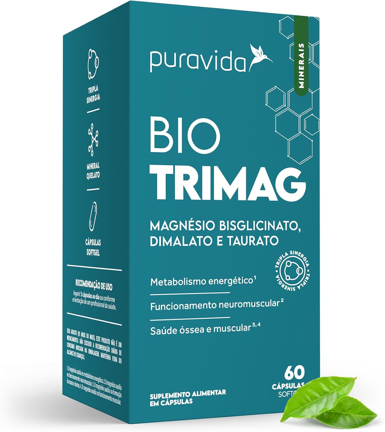 Bio Trimag: Sinergia entre 3 tipos de magnésio. Sem magnésio, o corpo não trabalha em sua capacidade máxima. O magnésio está envolvido em mais de 600 reações importantes no organismo. Ele está diretamente ligado à transmissão de impulsos nervosos. Mais de 50% do magnésio é armazenado nos ossos, enquanto a outra porção é distribuída por todo o corpo. Ou seja, é um nutriente vital para a saúde prosperar, e 80% da população brasileira apresenta deficiência desse elemento mineral. Os minerais podem ser encontrados em diversas formas moleculares que possuem diferentes taxas de absorção e de resposta no organismo. Para o Bio Trimag, desenvolvemos uma fórmula com três tipos de magnésio: Magnésio Malato Consiste na combinação de magnésio com ácido málico, um composto orgânico encontrado naturalmente em frutas, como as maçãs. Magnésio Bisglicinato Uma das melhores formas para suplementar o magnésio, por isso foi escolhido pela equipe de pesquisadores da Puravida para compor esta tripla sinergia. Magnésio Taurato Trata-se da combinação entre magnésio e taurina. A taurina é um aminoácido presente em maior quantidade em alimentos de origem animal, importante em diversas funções no organismo.