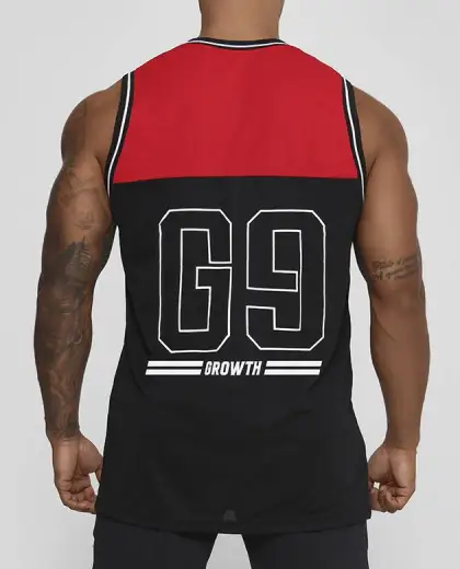 – COLEÇÃO GROWTH SPORTS- – REGATA GROWTH SPORTS G9 PRETA/VERMELHA – COMPOSIÇÃO 100% POLIÉSTER TRAMADO LEVE ACABAMENTO EM RIBANA ESTAMPA EM SUBLIMAÇÃO DIGITAL