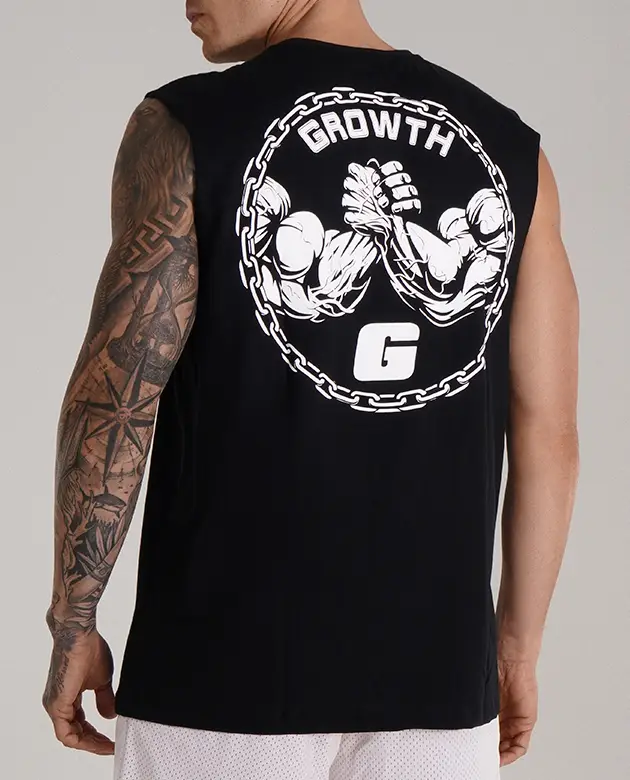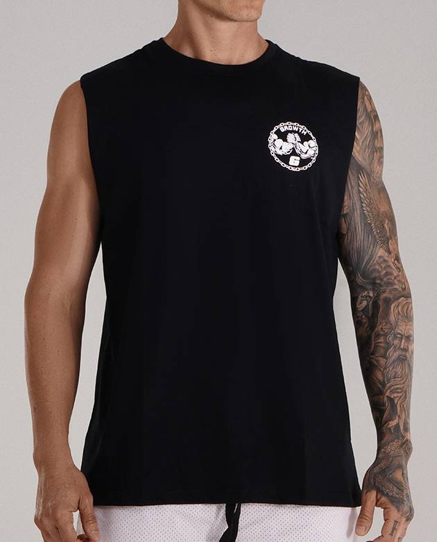– COLEÇÃO GROWTH SPORTS- – REGATA MACHÃO PRETA ARM WRESTLING – COMPOSIÇÃO 100% ALGODÃO – FIO 30.1 ESTAMPA FEITA EM PROCESSO SILK.