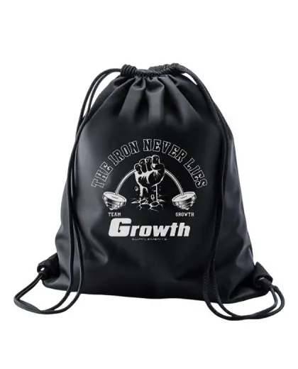 Foto de uma mulher usando legging segurando uma sacola tipo mochila da Growth Supplements Foto de uma mulher usando legging segurando uma sacola tipo mochila da Growth Supplements