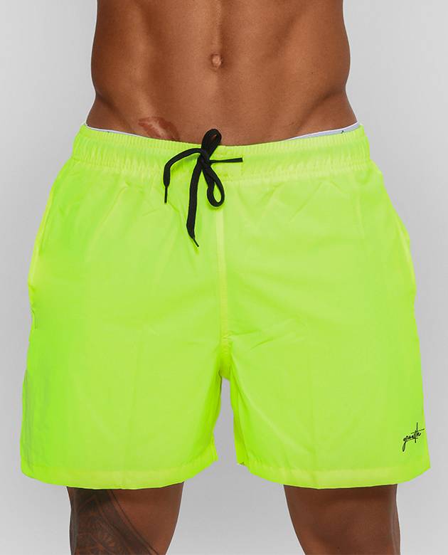 - COLEÇÃO GROWTH MINIMALL - - SHORT BANHO GROWTH MANUSCRITO AMARELO NEON - COMPOSIÇÃO CÓS EM ELÁSTICO PERSONALIZADO TECIDO ELASTIK POLIÉSTER COM ELASTANO ESTAMPA EM SILK