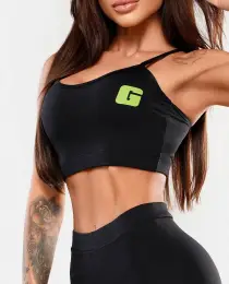 COLEÇÃO FEMININA GROWTH - - TOP PRETO G VERDE - DESCRIÇÃO TOP ALÇA EM POLIAMIDA COM FORRO E DETALHE EM ESTAMPA. TODOS OS TECIDOS DAS NOSSAS COLEÇÕES OFERECEM ALTA QUALIDADE EM TECNOLOGIAS QUE AUXILIAM NA PERFORMANCE E.