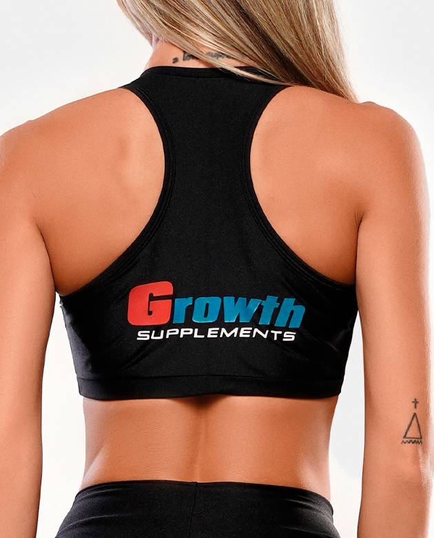 COLEÇÃO FEMININA GROWTH - - TOP PRETO GROWTH COSTAS - DESCRIÇÃO TOP DECOTE V EM POLIAMIDA METALIC COM DETALHE EM ESTAMPA GROWTH. TODOS OS TECIDOS DAS NOSSAS COLEÇÕES OFERECEM ALTA QUALIDADE EM TECNOLOGIAS QUE AUXILIAM.