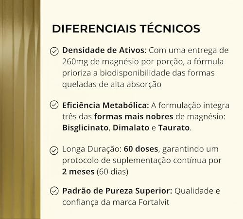 - Ao combinar diferentes tipos de magnésio em um único suplemento, como o bisglicinato, dimalato e taurato, obtém-se uma série de benefícios: