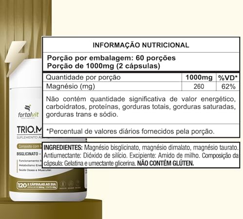Fortalvit TRIO.MAGNÉSIO – Longa Duração: 2 Meses de Uso, Bisglicinato – Dimalato – Taurato 130 g