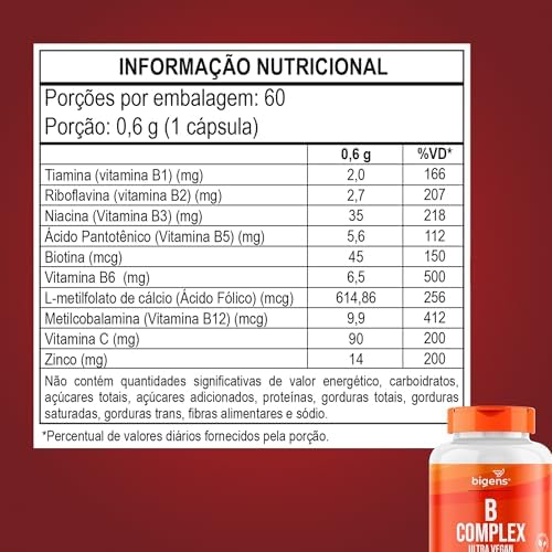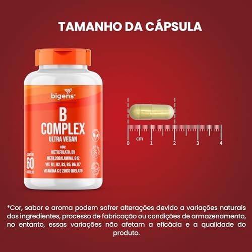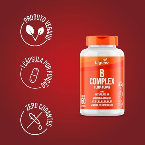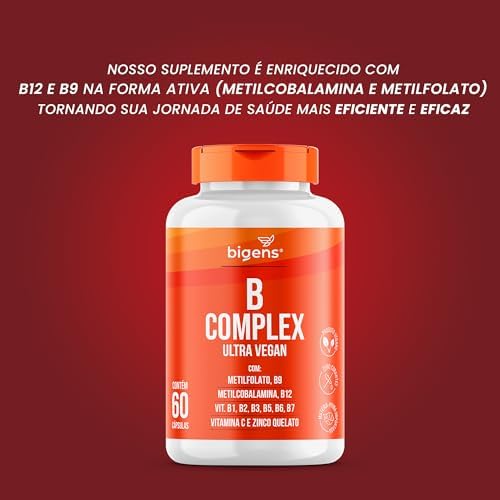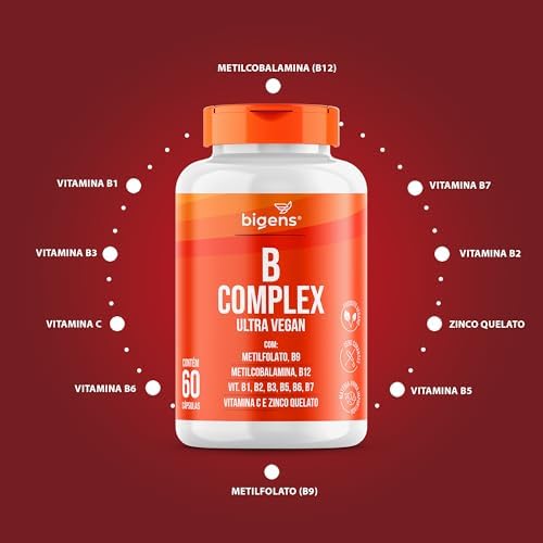 Bigens Vitaminas do Complexo B, Vegano, MetilFolato, Metil B12, B1, B2, B3, B5, B6, B7, C 0,6 g