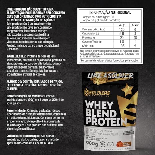 - 【WHEY BLEND PROTEIN】Whey Blend Protein Soldiers Nutrition é formulado com 3 proteínas diferentes e possui 20g de proteína por dose, com baixa quantidade de gorduras e zero açúcares adicionados.