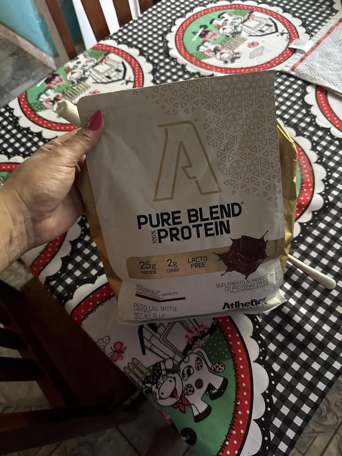 - Apresentação em pó, sabor chocolate, embalagem de 907g, fácil de preparar e consumir