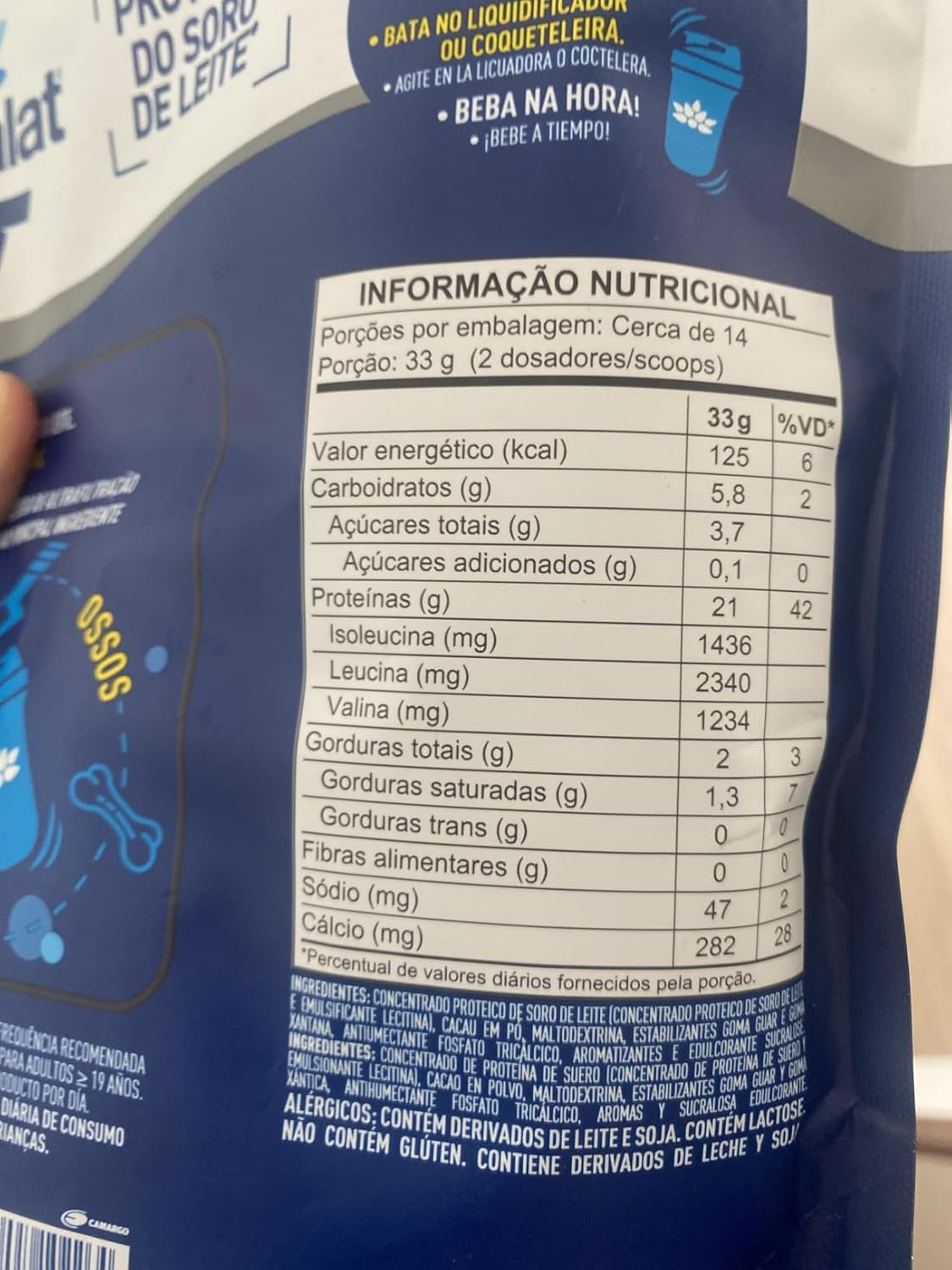 - Fonte de Whey Protein concentrado, produzido pela própria Parmalat.