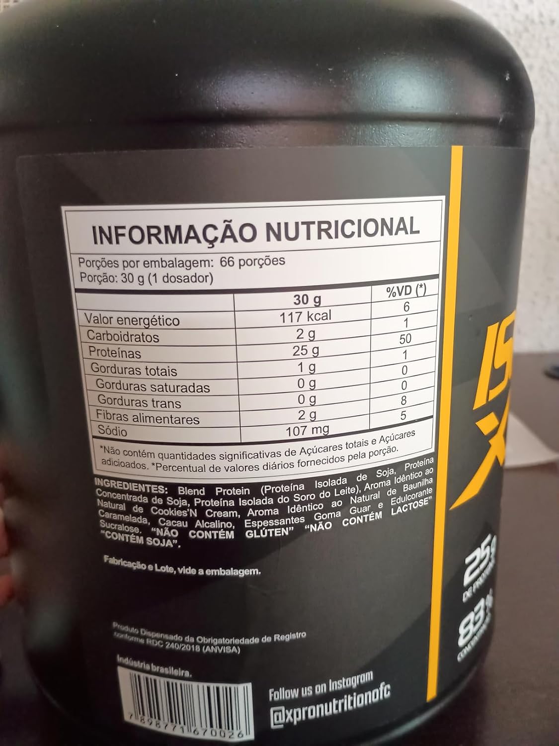 Produto chegou em perfeito estado, zero avarias, todo lacrado por dentro e por fora.Sobre o gosto: vi nos comentários queixas sobre o sabor… Convenhamos, vocês querem que tenha gosto e textura de que?! Milkshake? Trufa de chocolate? Por favor…O gosto é bom, da para tomar com água, mas eu amei no café. Não é doce demais. Eu comprei mesmo para comer com frutas, para mim se torna como se fosse uma sobremesa da minha dieta. Gosto de bater com banana e morango congelados. É bem tranquilo de verdade. Fiquei com medo de comprar porque li os comentários e me assustei, imaginei que fosse intragável, mas não. De gosto e textura ele é muito parecido com aquele na BRNfoods (BRN não recomendo pois o carboidrato é bem alto, mais parece hipercalórico. Tabela nutricional ruim se comparado com este da XPro).Sim, ele tem aquela textura arenosa ao tomar, porém dissolve bem. Comprei o sabor cookies & cream, mas ele só tem gosto de baunilha. Enfim, não comprei os outros sabores dessa marca. Esse foi o meu primeiro, pretendo comprar outros sabores para ir testando, pois gostei bastante da tabela nutricional: baixo carboidrato, alta proteína. Único ponto negativo foi a quantidade de SÓDIO, está bem alta. No mais recomendo. Custo-benefício ótimo.